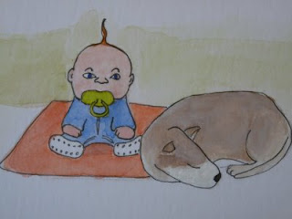 I have indeed been working. Two week-ends ago was the SCBWI conference and I entered the juried portfolio show so I was frantically getting work in order. I put in the fencer paintings, some of the sheep and created new pieces like this one.